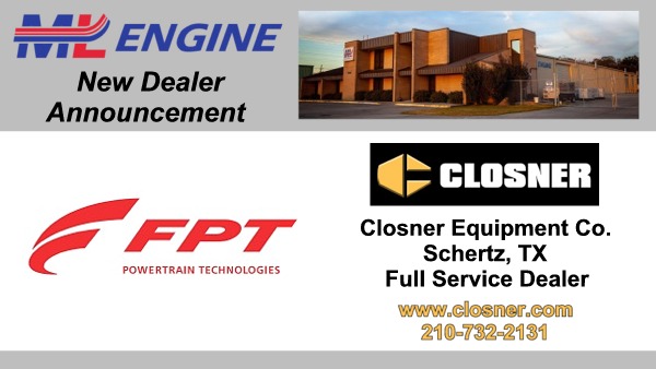 M&L Engine is Pleased to Announce Closner Equipment as a Full-Service FPT Powertrain Dealer in Schertz, Texas.