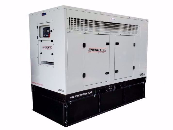 ML100JHRD-SS-EP - ENERGYPAC SYSTEMS - LEVEL 2 ENCLOSURE - EPA Stationary Standby Labeled- 100KW 3 Phase Radiator Cooled Diesel Generator set with: JCB 4.4L ECOMAX- 444TCAE-120 Stationary Emergency Standby, 1800rpm Diesel 4 Cylinder Turbo Charged, Charge Air Cooled Engine, Brushless Generator End with Automatic Voltage Regulator, LCD Control Panel with Key Switch, Safety Shutdown System (low engine oil/high temp), 12 Volt Electrics, Vibration Isolators, Radiator, Fan Guard, Hoses, Exhaust Muffler (*No EPA Aftertreatment), Top Mounted Industrial Air Cleaner, Engine Support Legs, Welded Steel Skid, Super-Silent Level 2 Sound Attenuated Powder Coated Aluminum Enclosure with lockable doors, Battery, Oil & Fuel filters with 500 Hour Service Intervals, Electric Fuel Pump, Owner's Manual, and Shop Load Bank Tested.