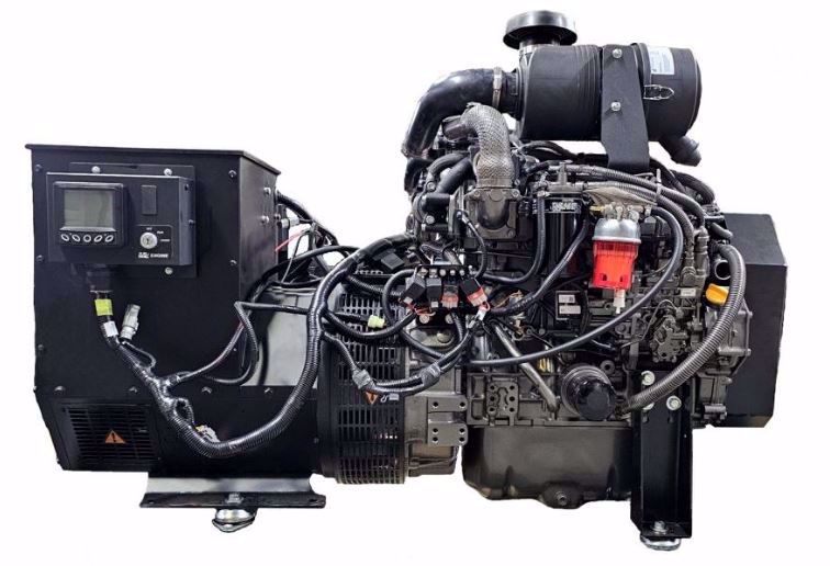 ML45YHKD - Yanmar - Marine Leader - 45KW Keel Cooled Marine Diesel Generator Set with: Yanmar 4TNV98T Marine T3 1800rpm 4 Cylinder Turbo Charged Diesel Engine, Mechanical Fuel System with Eco Gov, Heavy Duty Marine Brushless Generator End with Marine Coating & Automatic Voltage Regulator, Belt Guard, Exhaust Flange, Air Cleaner, Front Engine Support Legs, Rear Generator Support Legs, Vibration Isolators, LCD Display Full Control Panel, Safety Shutdown System (Low Oil Pressure/High Temp), Oil & Fuel Filters, 12 Volt Electrics, Electric Fuel Pump, Owner's Manual, and Shop Load Bank Tested.