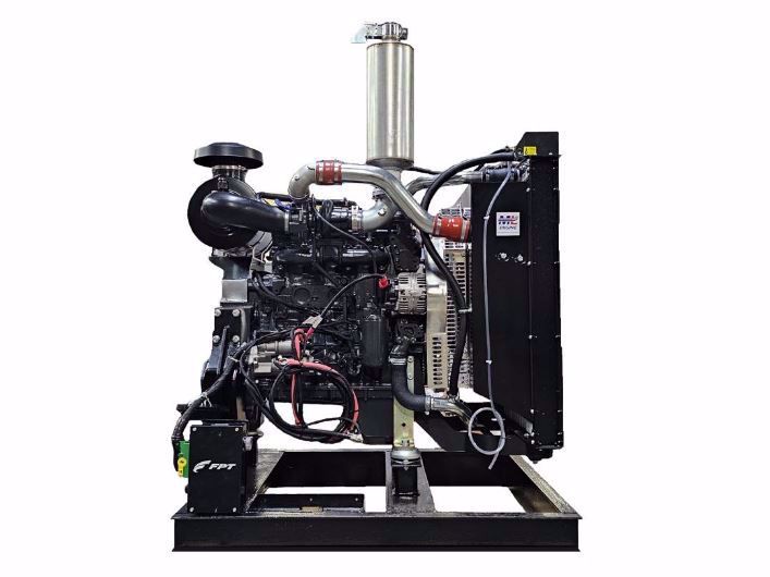 FPT NEF45 - 167HP @ 1800 RPM - Marine Tier 3 - Industrial Diesel 4 Cylinder Turbo Charged, Charge Air Cooled Power Unit - Complete with: Electronic Fuel System, Radiator, Grille Guard, Fan Guard, Hoses, Exhaust 90 Degree Tailpipe, Muffler, Air Cleaner, Engine Support Legs, Vibration Isolators, Welded Steel Skid, Battery Tray, Battery Cables, LCD Digital Control Panel with Throttle Control & Key Switch, Safety Shutdown System, Oil & Fuel filters, 12 Volt Electrics, SAE 3 Rear Housing/11.5" Flywheel, Owner's Manual, and Shop Tested.