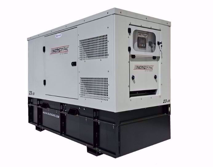 ML23IHRD-SS-EP - Isuzu - ENERGYPAC SYSTEMS - LEVEL 2 ENCLOSURE AND FUEL TANK PACKAGE- Stationary Standby Labeled - 23KW Radiator Cooled Diesel Generator set with: Isuzu 4LE2 iTier 4 Stationary Emergency Standby Mechanical 1800rpm 4 Cylinder Diesel Engine, Heavy Duty Brushless Generator End with Marine Coating & Automatic Voltage Regulator, Oversized Generator End for Full 1 Phase KW & Full 3 Phase KW Output, Automatic Start Control Panel with LCD Display (Engine monitoring, Generator Monitoring Amps/Volts/Hertz & Fuel Level), Safety Shutdown System, Vibration Isolators, Radiator, Hoses, Fan Guard, Industrial Air Cleaner, Engine Support Legs, Oil & Fuel Filters, Welded Steel Skid with Fork Pockets, Steel Center Point Liftying Eye, 140 Gallon Welded Aluminum Sub-Base Fuel Tank with Level Gauge, Super-Silent Level 2 Sound Attenuated Powder Coated Aluminum Enclosure with Lockable Doors, Battery Charger, Battery, Owner's Manual, and Shop Load Bank Tested.