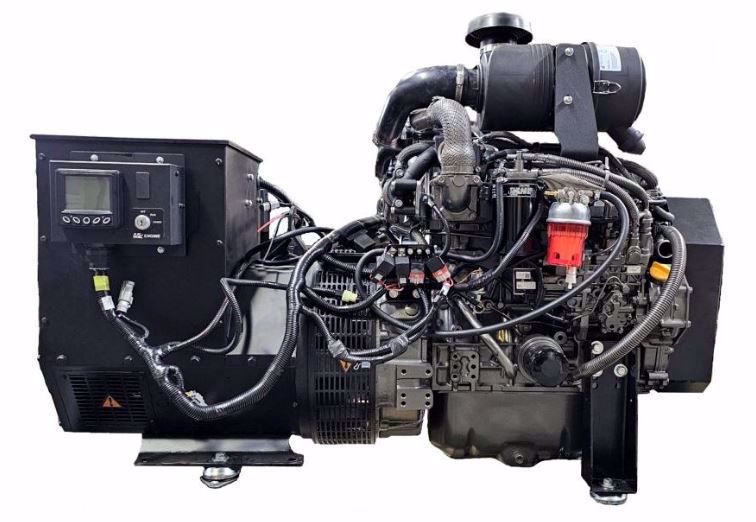 ML30YHKD - Yanmar - Marine Leader - 30KW, 3 Phase Keel Cooled Marine Diesel Generator Set with: Yanmar 4TNV98T Marine T3 1800rpm 4 Cylinder Turbo Charged Diesel Engine, Mechanical Fuel System with Eco Gov, Heavy Duty Marine Brushless Generator End with Marine Coating & Automatic Voltage Regulator, Belt Guard, Exhaust Flange, Air Cleaner, Front Engine Support Legs, Rear Generator Support Legs, Vibration Isolators, LCD Display Full Control Panel, Safety Shutdown System (Low Oil Pressure/High Temp), Oil & Fuel Filters, 12 Volt Electrics, Electric Fuel Pump, Owner's Manual, and Shop Load Bank Tested.